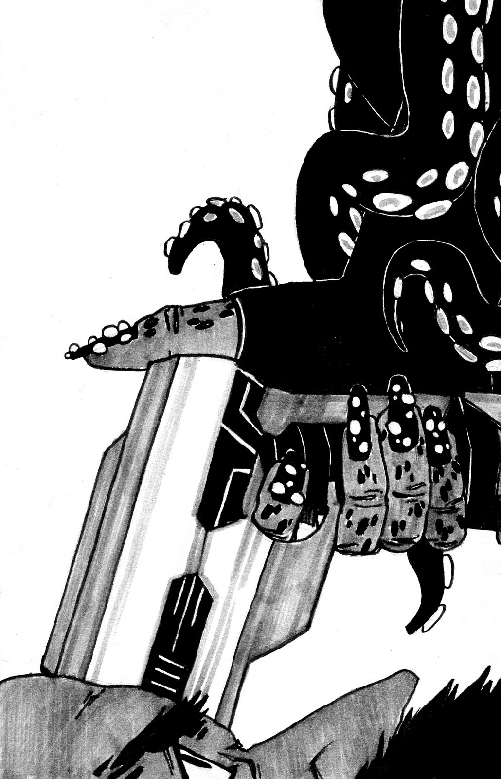 Space Jail is a collaborative comic made of awesome, bein' cranked out by MICA's Sequential Art Club. Aliens, repo men, sexy three-boobed octopus ladies, guns, and bushy beards. Gotta love it!